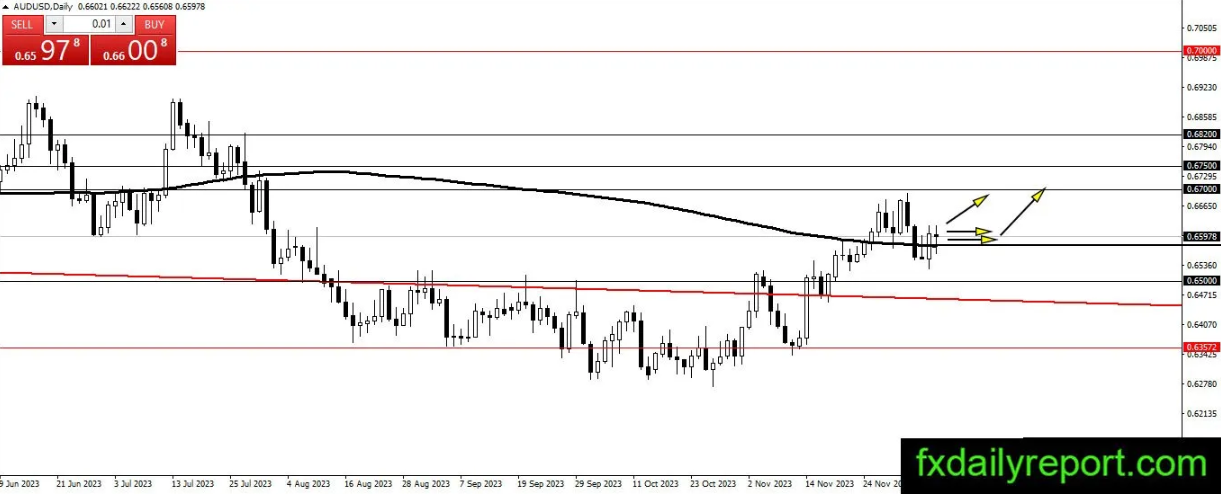 澳元/美元昨天收盘看涨,高于200日移动平均线。该货币对正试图将其位置维持在200日移动平均线之上,以确认看涨走势的持续。交易者可以继续在200日移动平均线和0.6500附近积累多头头寸。只要该货币对能够继续形成更高的摆动高点和摆动低点,趋势的方向将继续看涨。