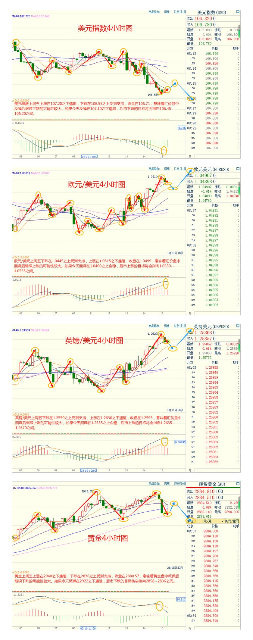美指上周五上涨在107.20之下遇阻,下跌在106.55之上受到支持,意味着美元短线上涨后有可能保持下跌的走势。如果美指今天上涨在107.10之下遇阻,后市下跌的目标将会指向106.45--106.20之间。今天美指短线阻力在107.05--107.10,短线重要阻力在107.40--107.45。今天美指短线支持在106.45--106.50,短线重要支持在106.20--106.25。