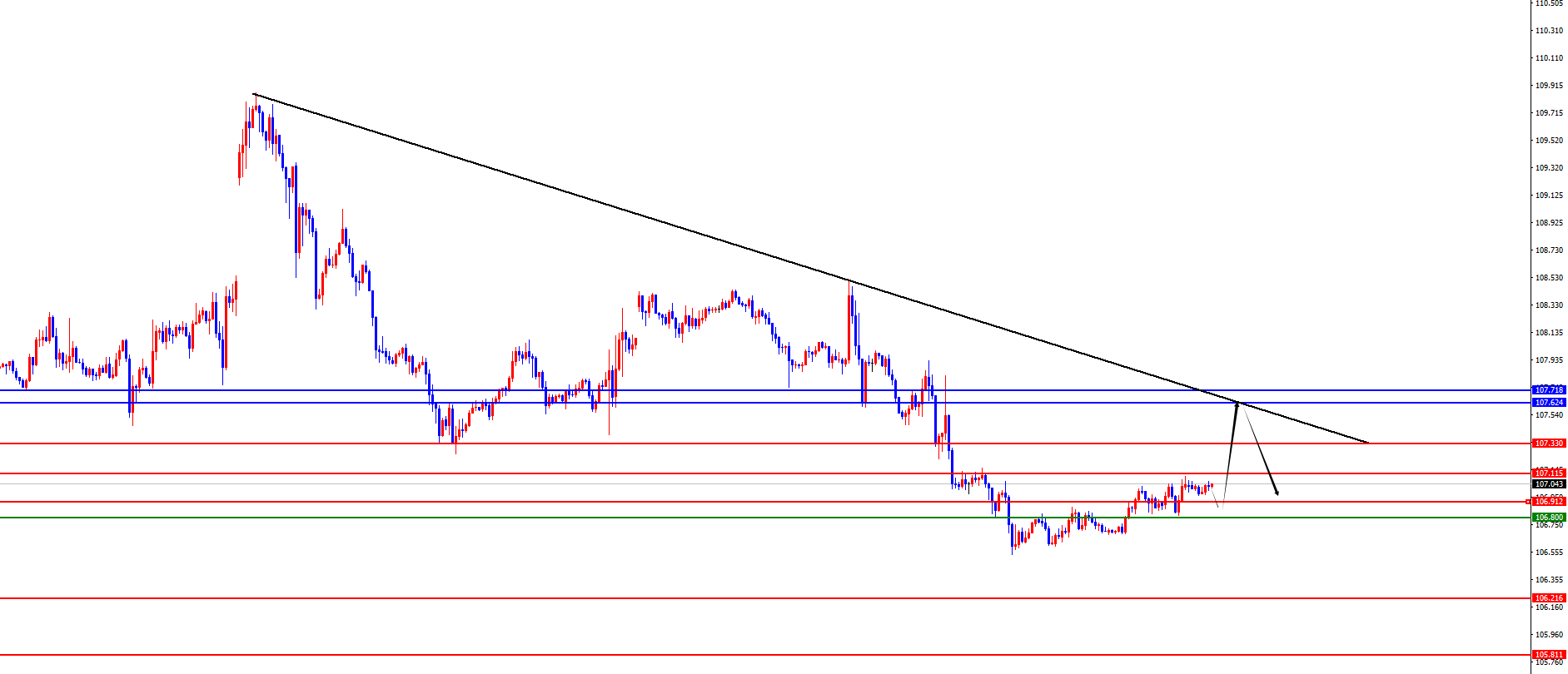 美指106.80-90区间多,防守5美金,目标107.30-107.60