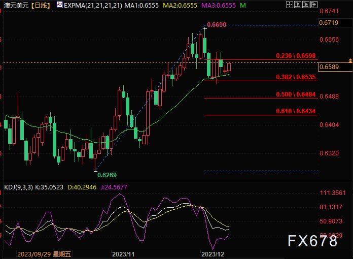 周二(12月12日),亚盘时段,澳元/美元震荡走高,一度刷新近两日高点至0.6593,涨幅约0.4%。澳洲联储主席布洛克的鹰派观点推动澳元上涨。
