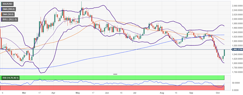 Valencia表示,在触底于1810.00美元/盎司附近后,由于避险情绪,黄金恢复上行趋势,买家关注下一个阻力位,即1884.00美元/盎司的20日移动均线。