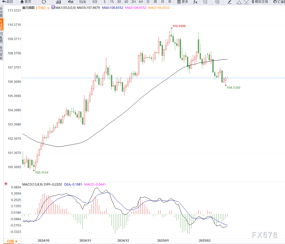 美元指数在周二亚洲时段持稳于106.75,较周一创下的两个月低点106.12有所回升。