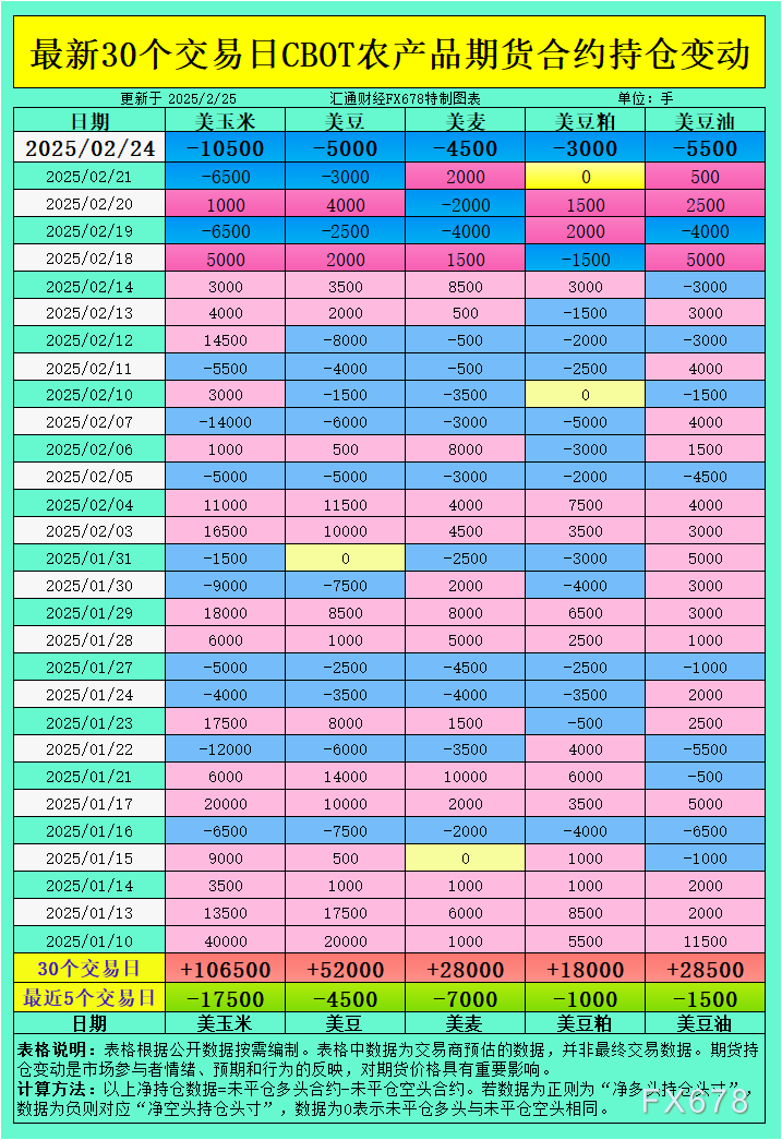 总的来说,短期内,CBOT谷物期货市场可能会受到全球供需变化及投机资金操作的双重影响,投资者应密切关注未来几周的天气变化、出口数据以及春季种植面积预期,以便为未来的市场波动做好准备。