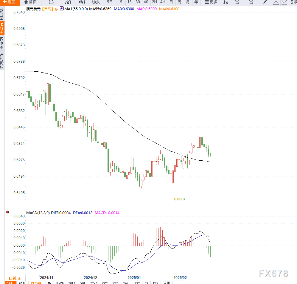 短期技术走势偏空:投资数据公布后,澳元未能守住关键支撑位,投资者对澳元资产的信心可能受到影响,短期内澳元或继续承压。