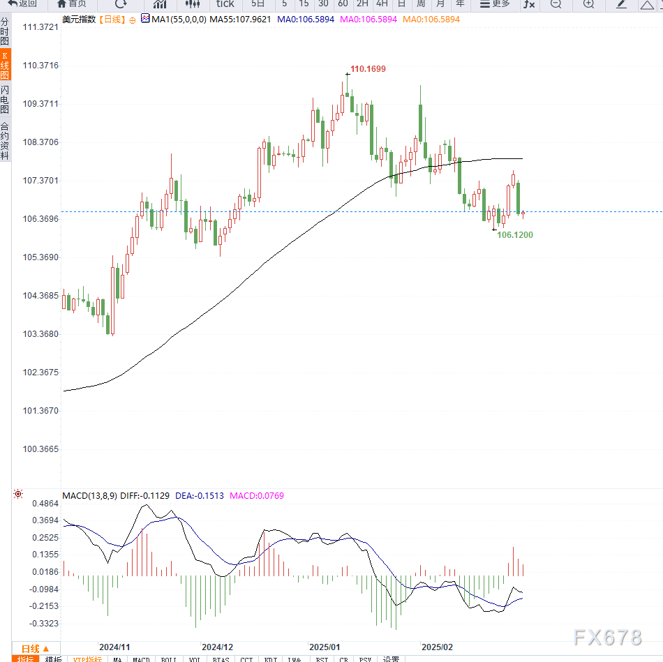 尽管避险情绪升温,但美元指数回落至106.49,因市场押注美联储可能在经济放缓的背景下维持降息路径。