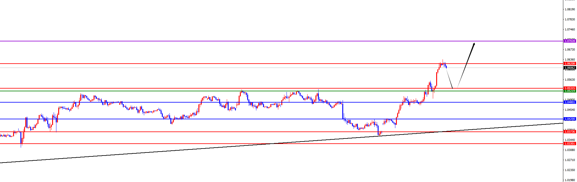 欧美1.0520-30区间多,防守40点,目标1.0600-1.0700