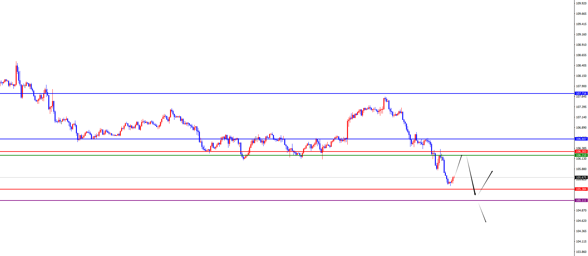 美指106.20-30区间空,防守5美金,目标105.60-105.40-105.10