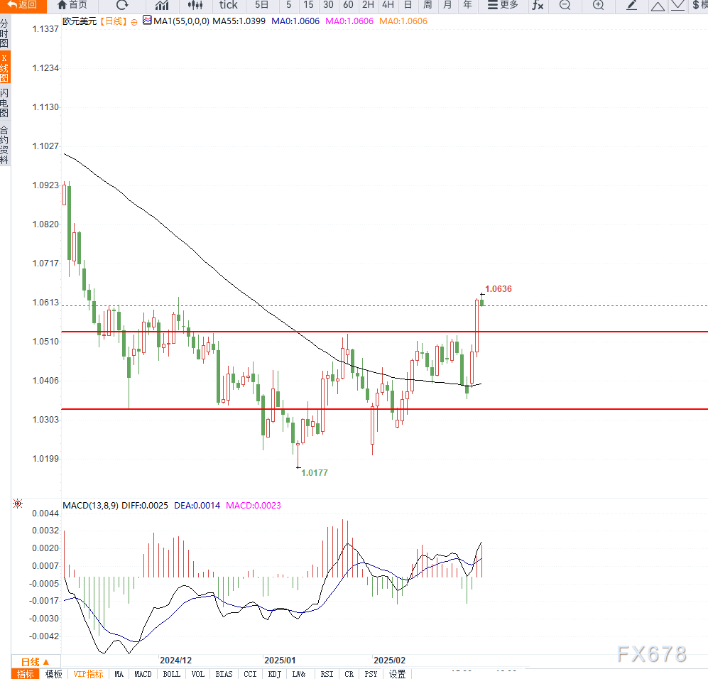 短期来看,若德国债务改革进一步推进,欧元有望维持强势。而美元走势则需关注美国经济数据表现,尤其是未来几个月的通胀和就业情况。如果贸易冲突加剧导致经济放缓,美元可能继续走弱。