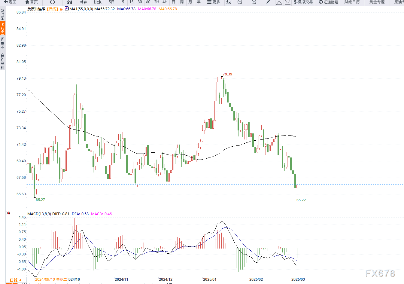 盘中,布伦特原油一度触及68.33美元,而美国原油一度跌至65.22美元,随后因美国白宫宣布推迟部分汽车关税征收,油价略有回升。