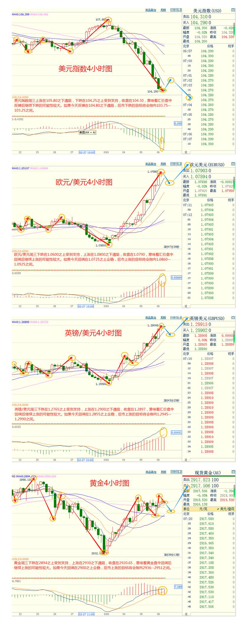 美指周三上涨在105.80之下遇阻,下跌在104.25之上受到支持,意味着美元短线上涨后有可能保持下跌的走势。如果美指今天上涨在104.80之下遇阻,后市下跌的目标将会指向103.75--103.25之间。今天美指短线阻力在104.75--104.80,短线重要阻力在105.25--105.30。今天美指短线支持在103.75--103.80,短线重要支持在103.25--103.30。