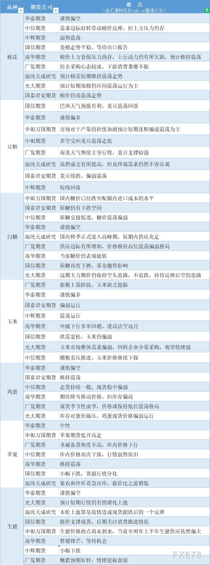 期货公司观点汇总一张图:12月14日农产品(棉花、豆粕、白糖、玉米、鸡蛋、生猪等)