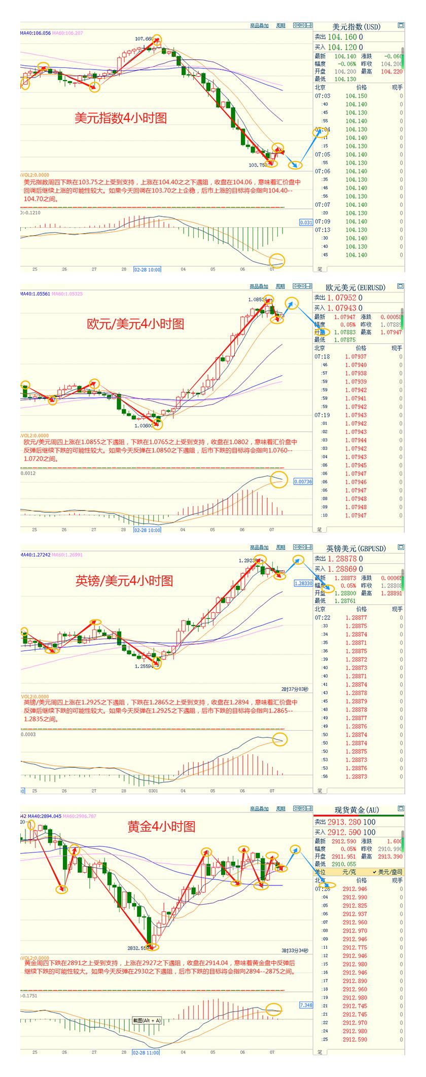 美指周四上涨在104.40之下遇阻,下跌在103.75之上受到支持,意味着美元短线下跌后有可能保持上涨的走势。如果美指今天下跌在103.70之上企稳,后市上涨的目标将会指向104.40--104.70之间。今天美指短线阻力在104.35--104.40,短线重要阻力在104.65--104.70。今天美指短线支持在103.70--103.75,短线重要支持在103.40--103.45。
