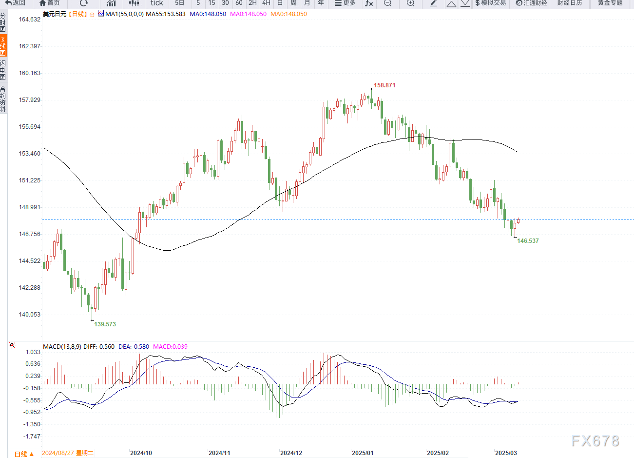 整体来看,日本国债收益率虽创下16年新高,但日本央行的谨慎态度可能继续压制日元,使其维持在148至150区间,短期内反弹空间有限。