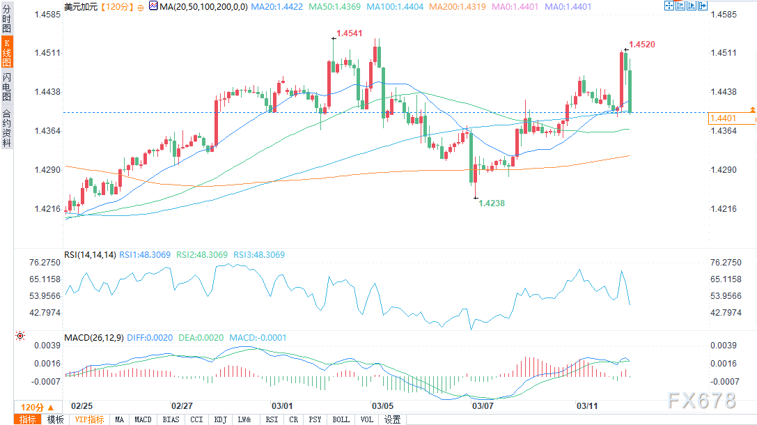 周二(3月11日)美盘时段,美元/加元盘中报1.4395,跌幅0.3%。美元/加元盘中出现大幅上涨,随后又快速回落,显示出市场多空双方力量在不断博弈。加元在外汇市场中成为关注焦点,投资者纷纷担忧其后续发展态势。