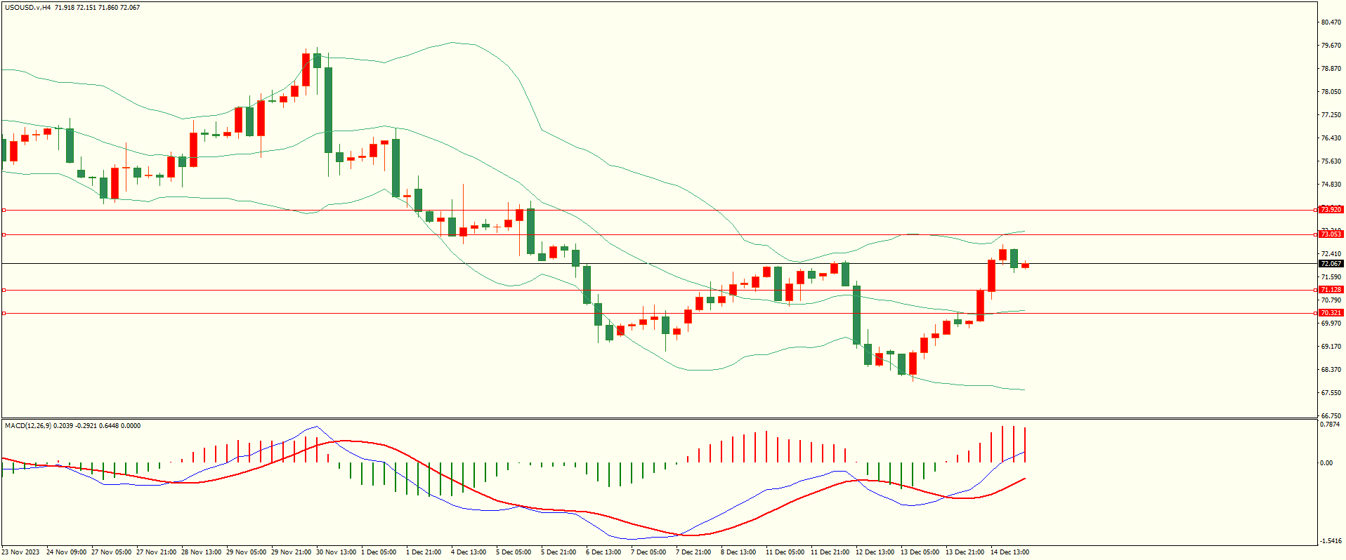 原油昨日小幅调整后延续走高,纽约盘时段在利好因素提振下扩大涨幅,日线报收上下影线中阳线,目前上方紧邻前低阻力区,收复后本轮反弹方可继续,从4H来看,布林中轨偏上,MACD零轴附近运行,日内下方首要支撑71.10,第二支撑70.30,上方阻力73.00,73.90,保持在第一支撑上方短线有望测试第一阻力。