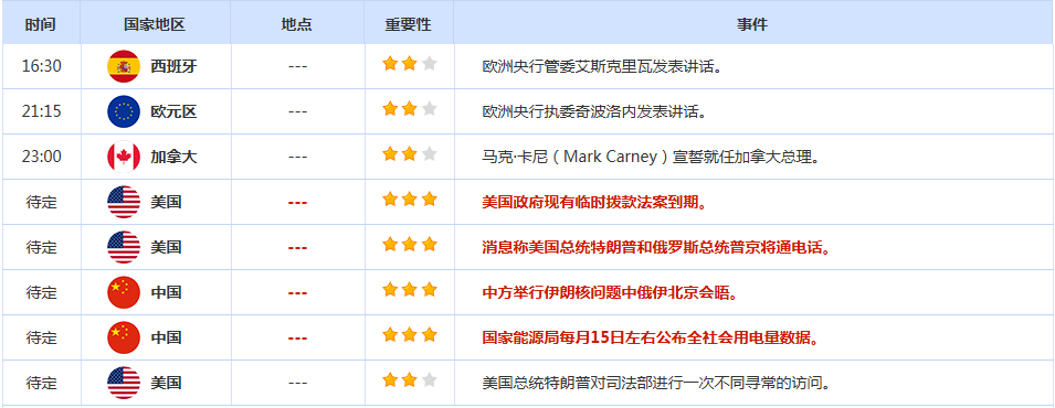 前日公布数据与消息: