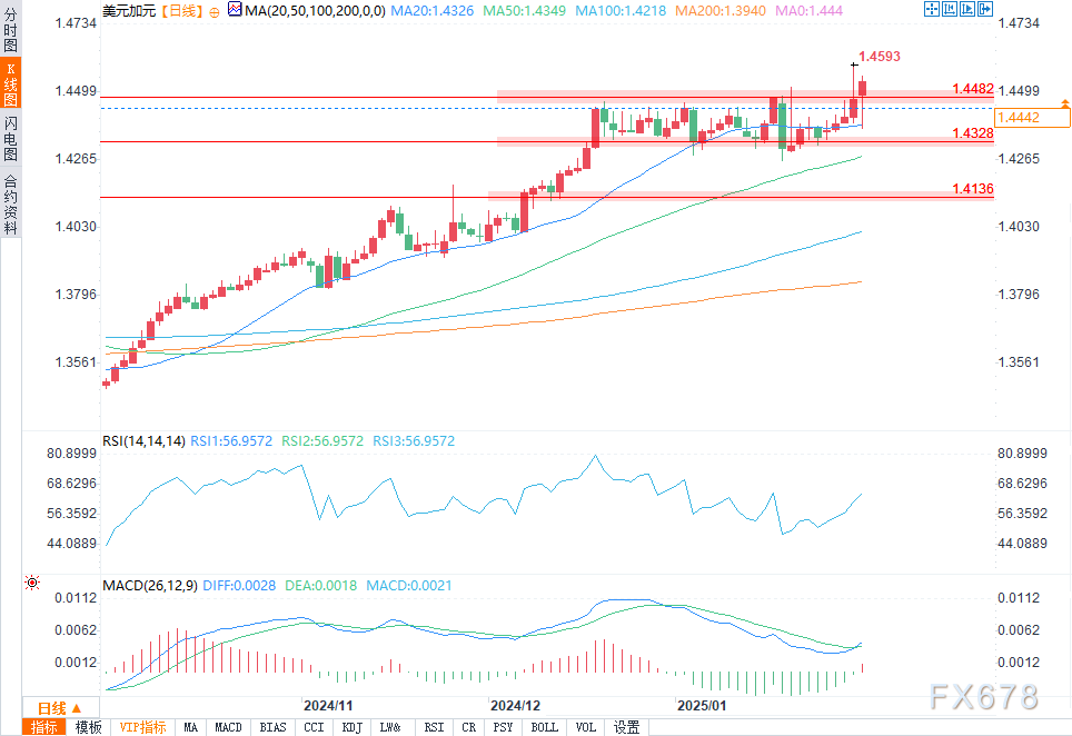 鉴于美联储的利率为4.5%,加拿大央行的利率为2.75%,这种利率差异成为影响美元/加元汇率走势的关键因素,支撑了美元的买盘压力。如果情况保持稳定,这种差异可能会在中期内进一步给加元带来压力。