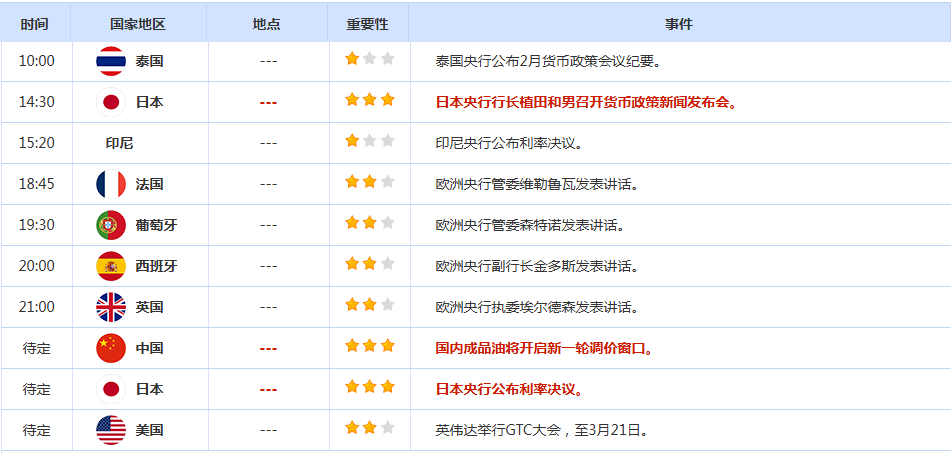 美国石油协会(API)将于稍晚公布石油库存数据,EIA将于周三公布数据。分析师预测,在截至3月14日的一周内,美国原油库存增加约90万桶。