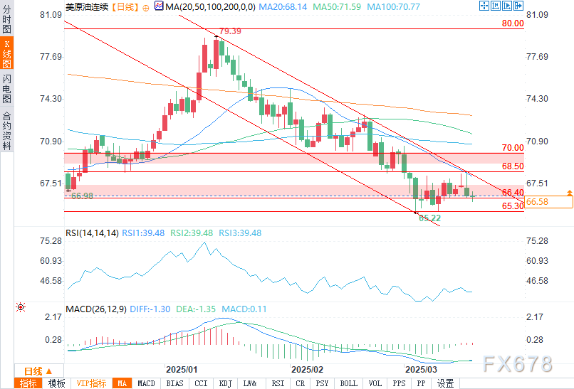 北京时间21:46,WTI原油报66.58美元每桶,跌幅0.25%。