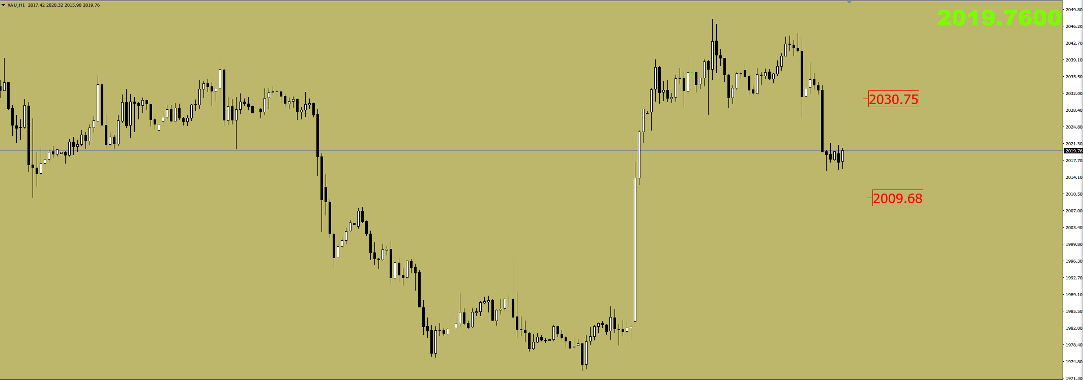 2010这个价格刚好是这段上涨斐波那契50%的回撤支撑,下方2001是斐波那契61.8%的关键回撤支撑,我会结合日内K线收线,在关键价格支撑附近的表现,酌情参与。这是今天对于国际黄金市场的交易思路,当然投机就存在风险,我也会带好止损做好风控参与交易的。