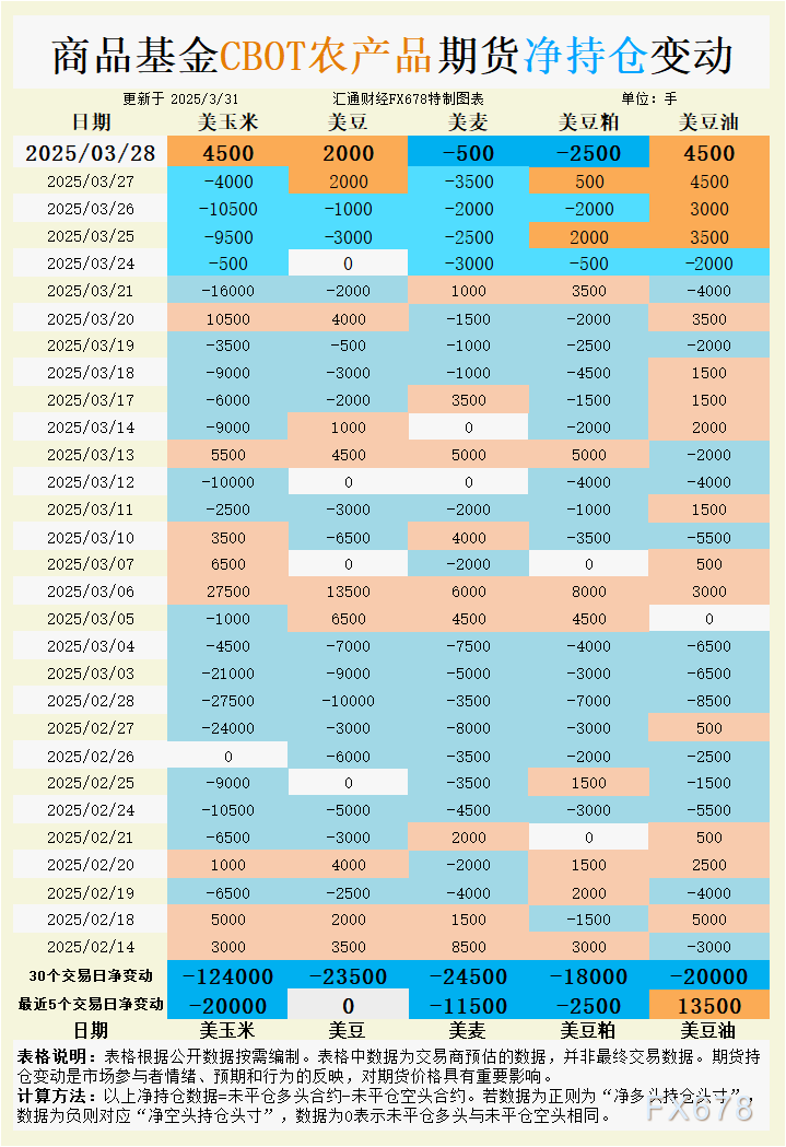 最近5个交易日:玉米、小麦、豆粕净空头持续累积,豆油净多头增加