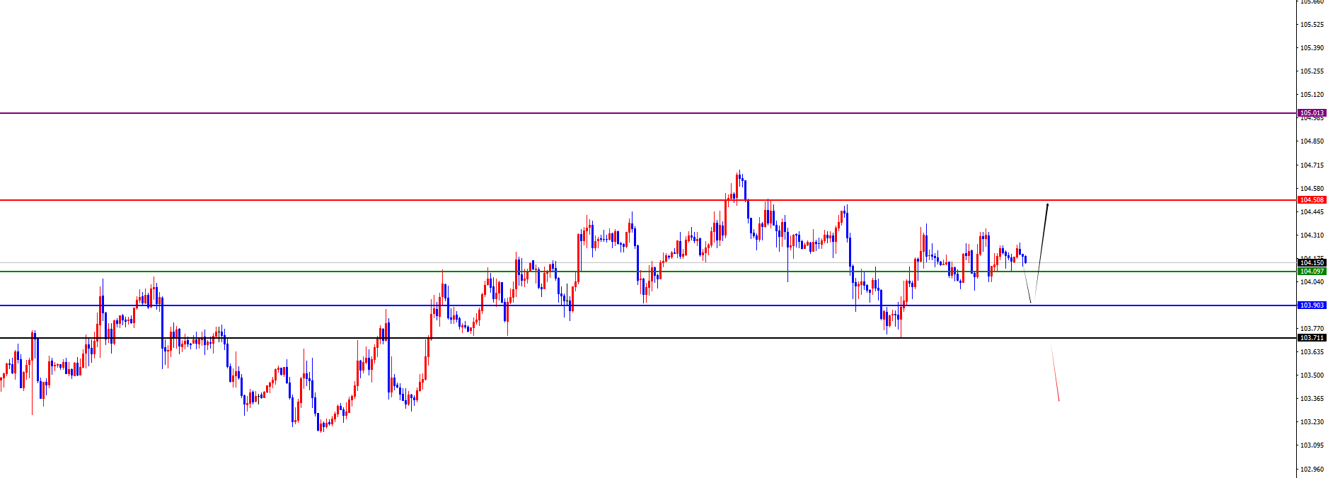 美元指数方面,周二美元指数价格总体呈现震荡的状态。当日价格最高上涨至104.345位置,最低于103.99位置,收盘于104.19位置。回顾周二美指价格表现,早间开盘后价格短线先承压下跌,随后在日线支撑上方再度止步上行,但是整体幅度不大,价格属于震荡式上涨,最终收盘看阳十字收尾。从周线上看持续关注106.60位置,此位置是中线走势的关键,价格在此位置之下中线偏空,价格上涨暂时作为中线下跌中的修正对待。同时按照日线级别看暂时需要关注103.90位置,此位置是波段走势的关键,价格在此位置之上波段多对待,同时四小时上暂时关注104.10区域支撑,所以在价格目前没有跌破周一低点之前先依托日线支撑看上行,只有下破后才会进行转空。同时目前消息较多,大家一定要注意市场风险。