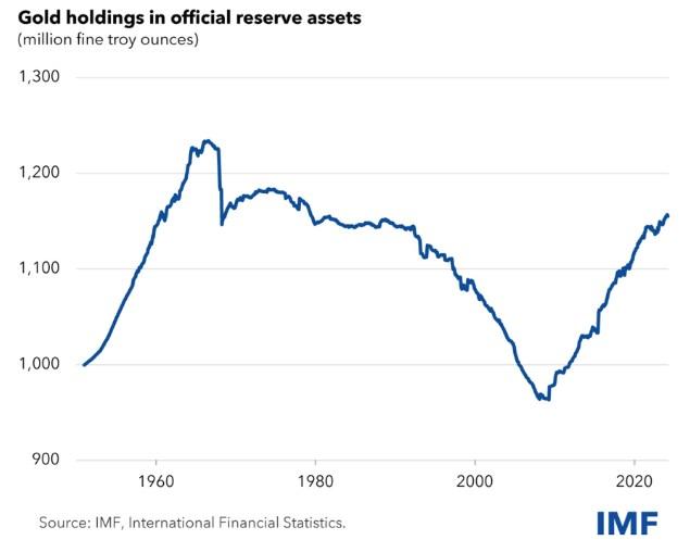 Richter写道:“根据IMF未更新的2024年数据,各国央行的黄金持有量从2006年激增约2亿金衡盎司(6221吨)至11.6亿金衡盎司。”
