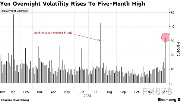 美元兑日元的隔夜隐含波动率跳升至7月以来最高,这一数据变动反映市场对日本央行政策调整的敏感性和紧张情绪。