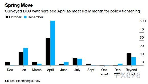 三分之二的经济学家预计,日本央行将在明年4月前结束零利率政策,因此他们关注的焦点将是,央行是否在实现通胀目标方面发出了任何进展的信号。