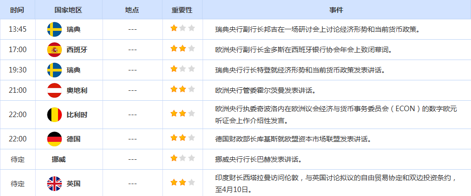 前日公布数据与消息: