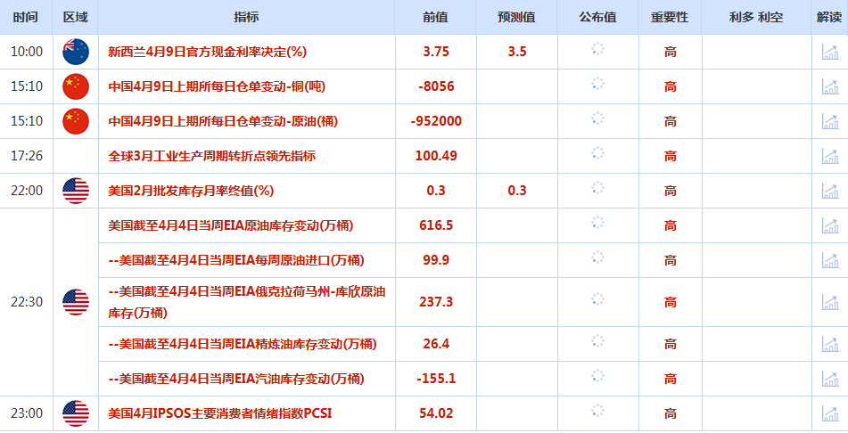 前日公布数据与消息: