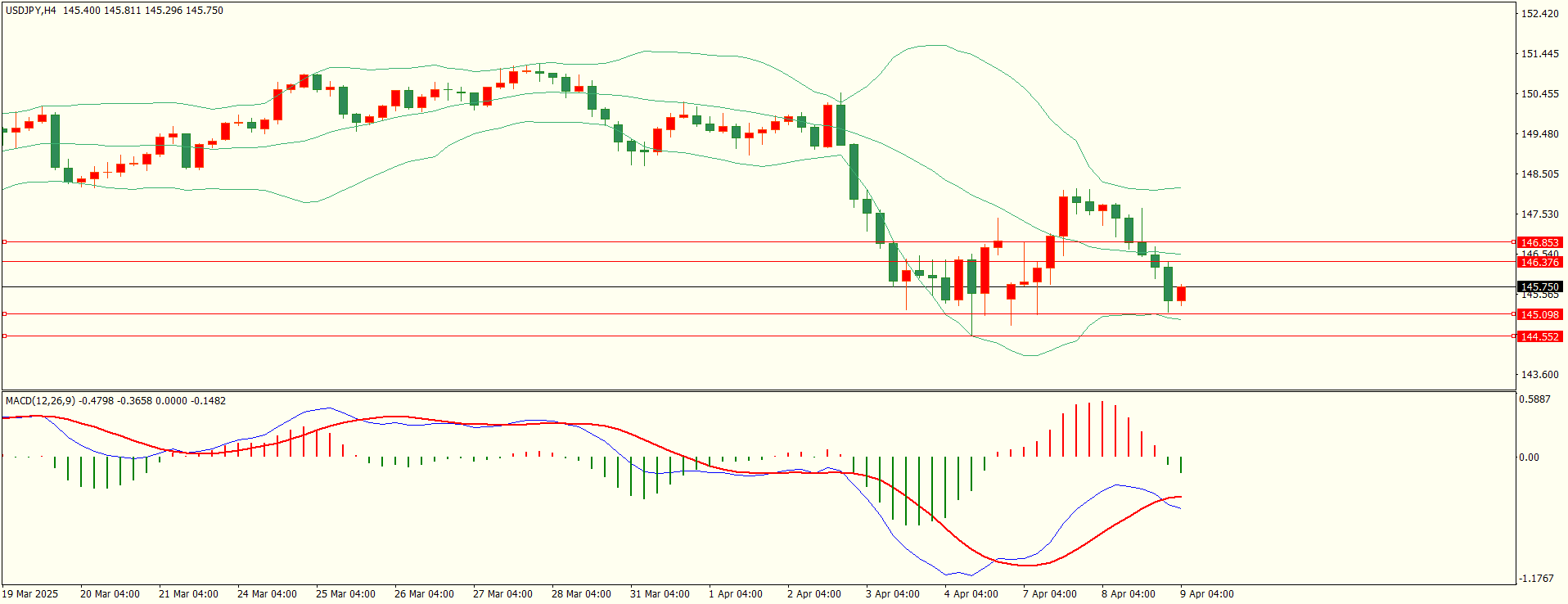 美日昨日小幅调整后冲高回落,至收盘续创日内新低,日线报收上下影线中阴线,上方阻力保持,同时下方需留意前低支撑,下破后方可打开下行空间,从4H来看,布林上下轨略有扩张,MACD零轴下方运行,日内上方首要阻力146.35,第二阻力146.85,下方支撑145.10,144.55,保持在第一阻力下方短线有望回测第一支撑。