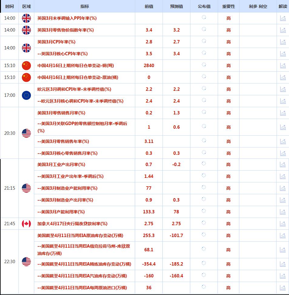 CWG Markets市场资讯2025年4月16日(周三):