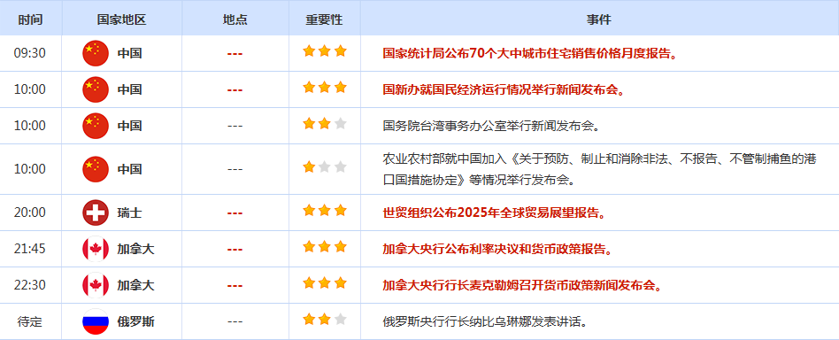 前日公布数据与消息: