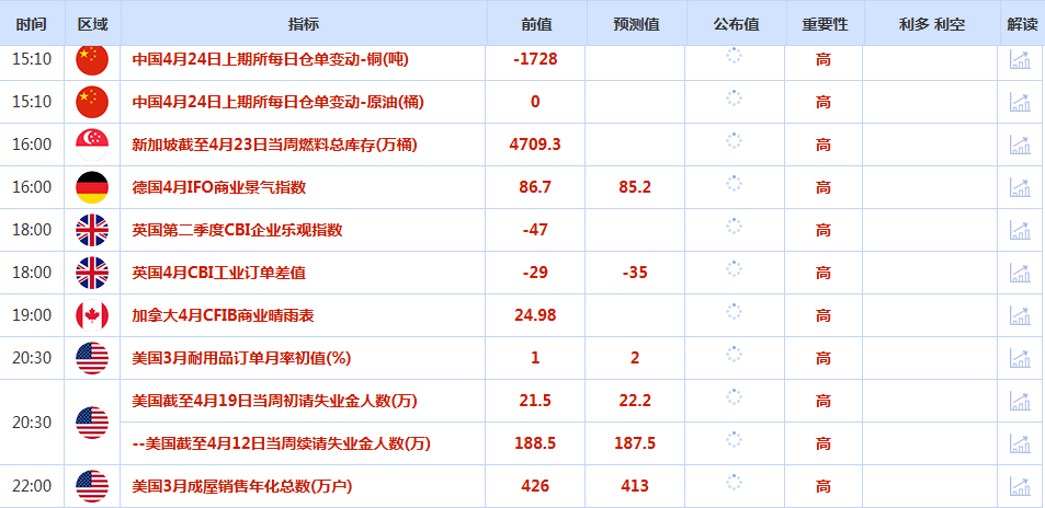 前日公布数据与消息: