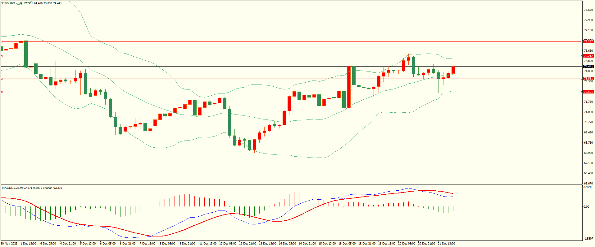 原油昨日反弹至第一阻力承压下行,盘中回落至第一支撑再次展开反弹,日线报收上下影线小阳线,下方支撑保持,同时需继续关注前低密集压力区,突破后方可继续,从4H来看,布林中轨偏上,MACD零轴上方运行,日内下方首要支撑73.50,第二支撑72.50-60,上方阻力75.20,76.20-30.保持在第一支撑上方短线有望测试第一阻力。