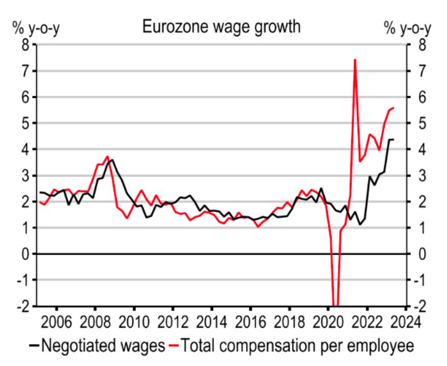 汇丰的欧洲经济学家认为,工资压力仍然过高,欧洲央行在2024年底之前不太可能考虑降息。