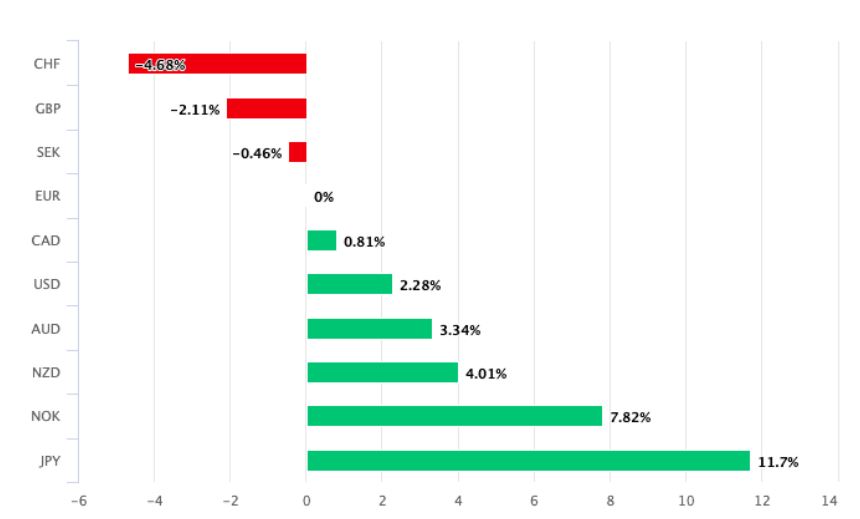 欧元是2023年表现较好的货币之一,仅次于瑞士、英国和瑞典等欧洲货币。
