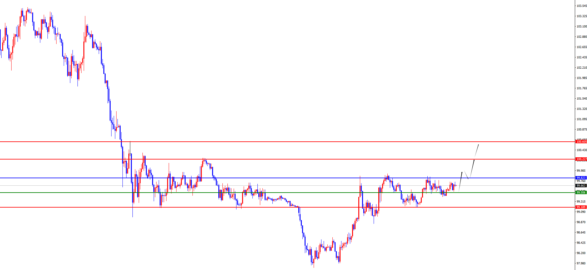 从多周期分析,周线级别来看价格压制在103.90区域阻力,那么从中期视角出发,美元指数的走势将更偏向于空头。在日线级别上价格压制在99.80区域的阻力位,那么从波段看空头的思路进行操作,但是后续需要谨防价格再度上破并站上日线阻力。短期四小时上看99.50及99.20区域支撑,价格在此位置之上则短期依旧维持偏多表现,上方则关注日线阻力得失,一旦上破则后续波段有望开启一波上涨,大家注意市场节奏即可。