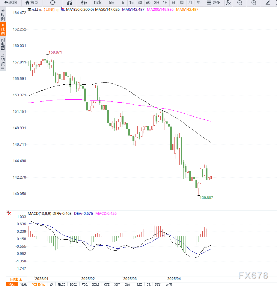 反之,若上破142.65,则短线可能出现空头回补,测试143.40阻力区域,进一步突破后才有望重新挑战144.00关口。