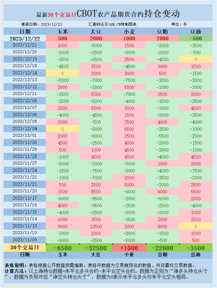 CBOT持仓变动情况
