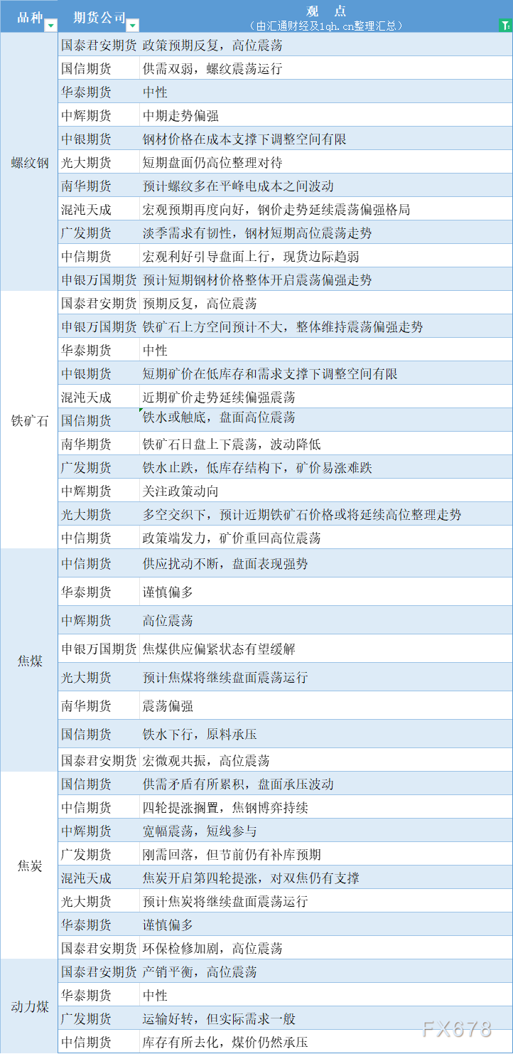 期货公司观点汇总一张图:12月26日黑色系(螺纹钢、焦煤、焦炭、铁矿石、动力煤等)