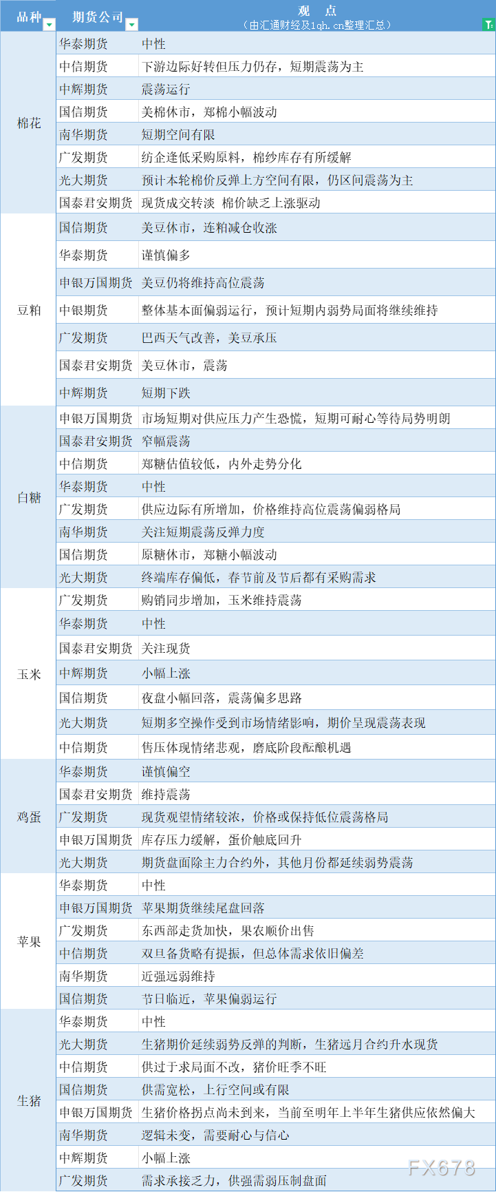 期货公司观点汇总一张图:12月26日农产品(棉花、豆粕、白糖、玉米、鸡蛋、生猪等)