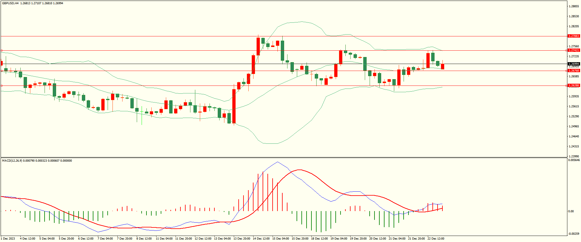 英镑上周五触及前高阻力承压下行,此位置构成上行首要阻力,突破后方可继续,从4H来看,布林上下轨略有收窄,MACD零轴附近运行,日内下方首要支撑1.2675,第二支撑1.2625,上方阻力1.2740,1.2780-90,第一支撑在没有下破前短线有望回测第一阻力。