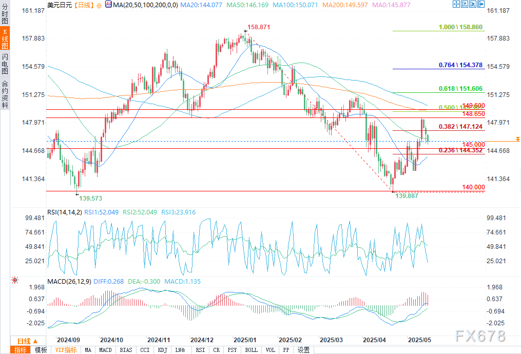周四(5月15日)欧盘时段,美元兑日元价格整体呈下行态势。价格跌破了146.00这一关键心理关口,下探至145.50附近。