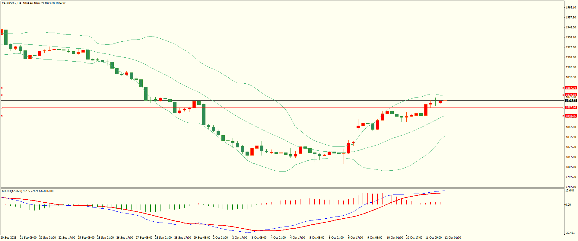 黄金昨日小幅回调后延续走高,至收盘触及第二阻力略有缓和,日线报收上影线中阳线,从收盘来看,上方紧邻前高阻力区,在没有收复前谨慎追涨,结合4H来看,布林中轨偏上,MACD零轴上方运行,日内下方首要支撑1867-68,第二支撑1858-59,上方阻力1879-80,1886-87,第一支撑在没有下破前短线有望测试第一阻力。