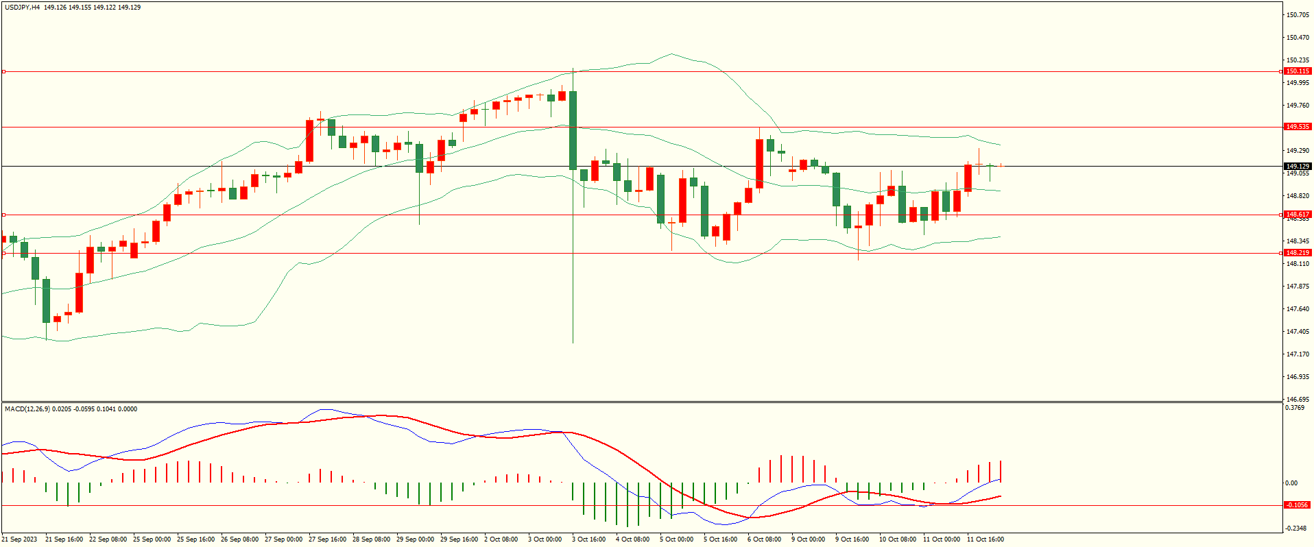 美日昨日亚市开盘后震荡上行,尾盘时段略有反复,日线报收上下影线小阳线,总体来看,日线的多空震荡尚未结束,短线谨慎追涨杀跌,从4H来看,布林上下轨略有收窄,MACD零轴附近运行,日内上方首要阻力149.50,第二阻力150.00-10,下方支撑148.60,148.20,保持在第一阻力下方短线有望回测第一支撑。