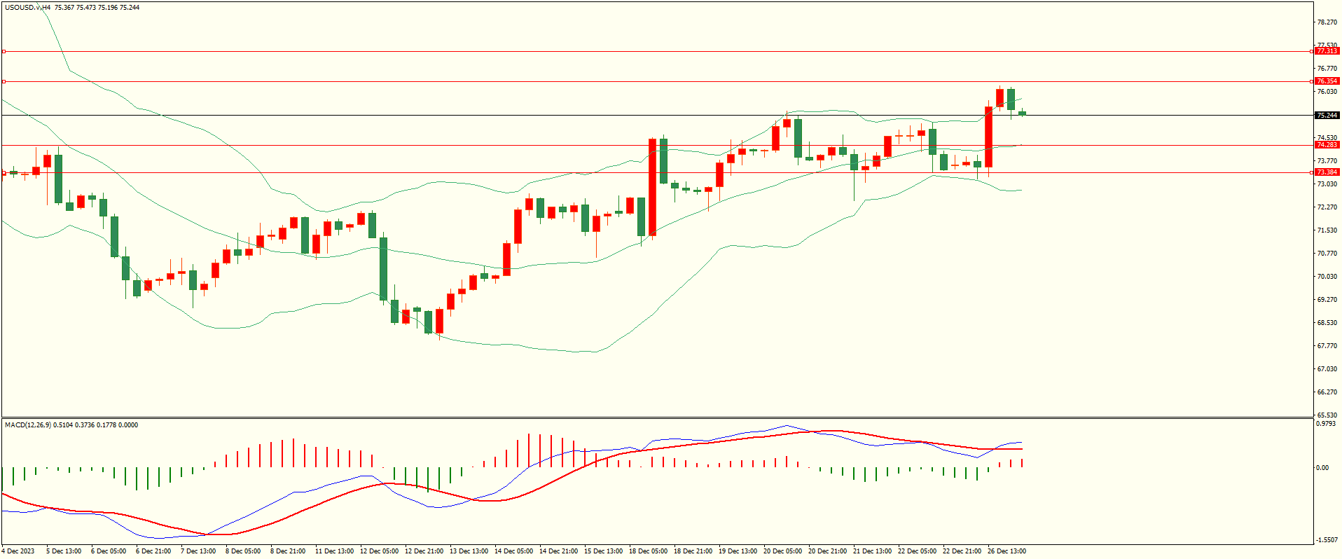 原油昨日小幅调整后展开反弹,至收盘续创日内新高,日线报收上下影线中阳线,目前上方紧邻前低密集压力区,收复后本轮反弹方可继续,从4H来看,布林中轨偏上,MACD零轴上方运行,日内下方首要支撑74.20-30,第二支撑73.30-40,上方阻力76.35,77.30,保持在第一支撑上方短线有望测试第一阻力。