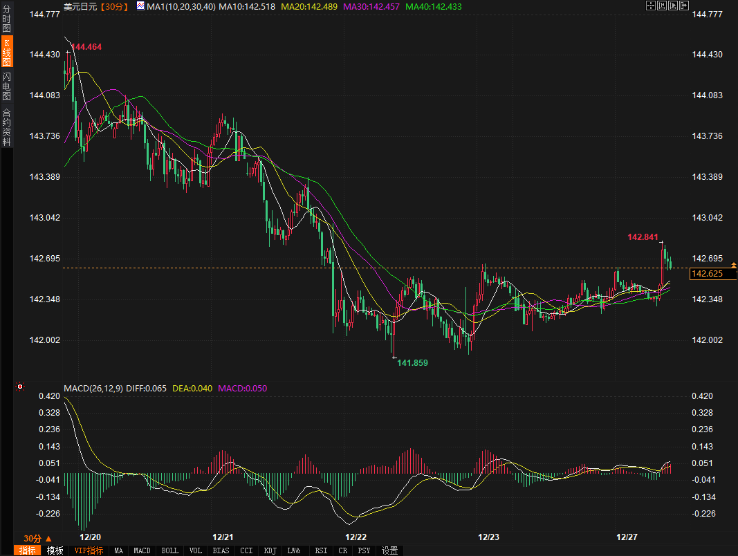 12月27日亚市盘中,美元兑日元短线上涨至142.68,显示出挑战143关口的强劲势头。然而,关于结束负利率的“黑天鹅”信号仍然没有出现。日本央行行长植田和男强调,目前实现价格目标的展望还不够明朗。