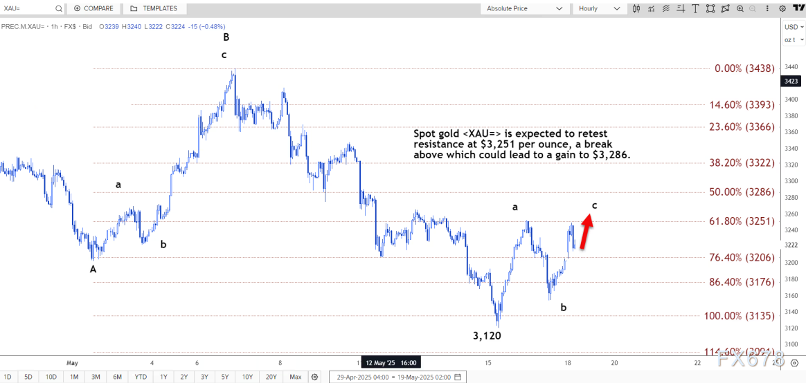 路透技术分析师指出,现货黄金预计将重新测试每盎司 3251 美元的阻力位,突破该水平可能上涨至 3286 美元。